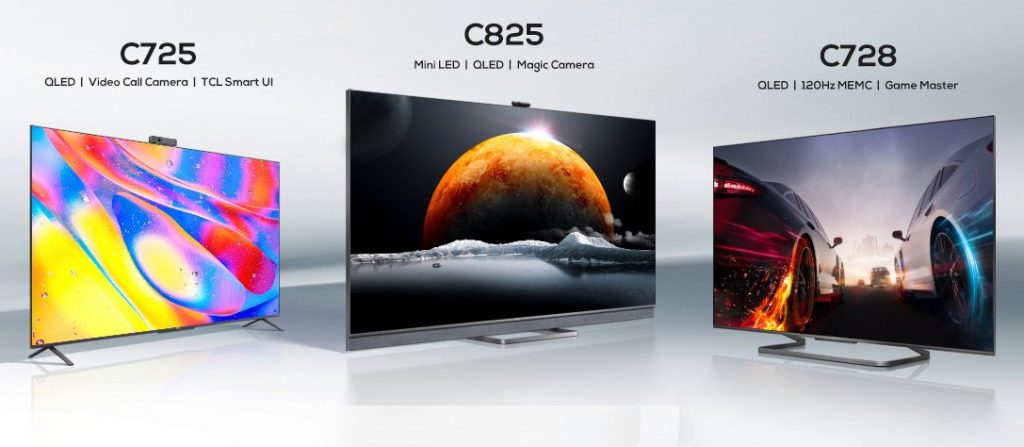 The C725 features a video call camera, users can do video calling via Google Duo on the QLED display, Dolby Vision, HDR 10+ technology, 4K resolution, AiPQ Engine, and supports both MEMC and HDMI 2.1. Also, has ONKYO certified soundbar with Dolby Atmos, hands-free voice control 2.0, TCL Channel 3.0 and Game Centre.